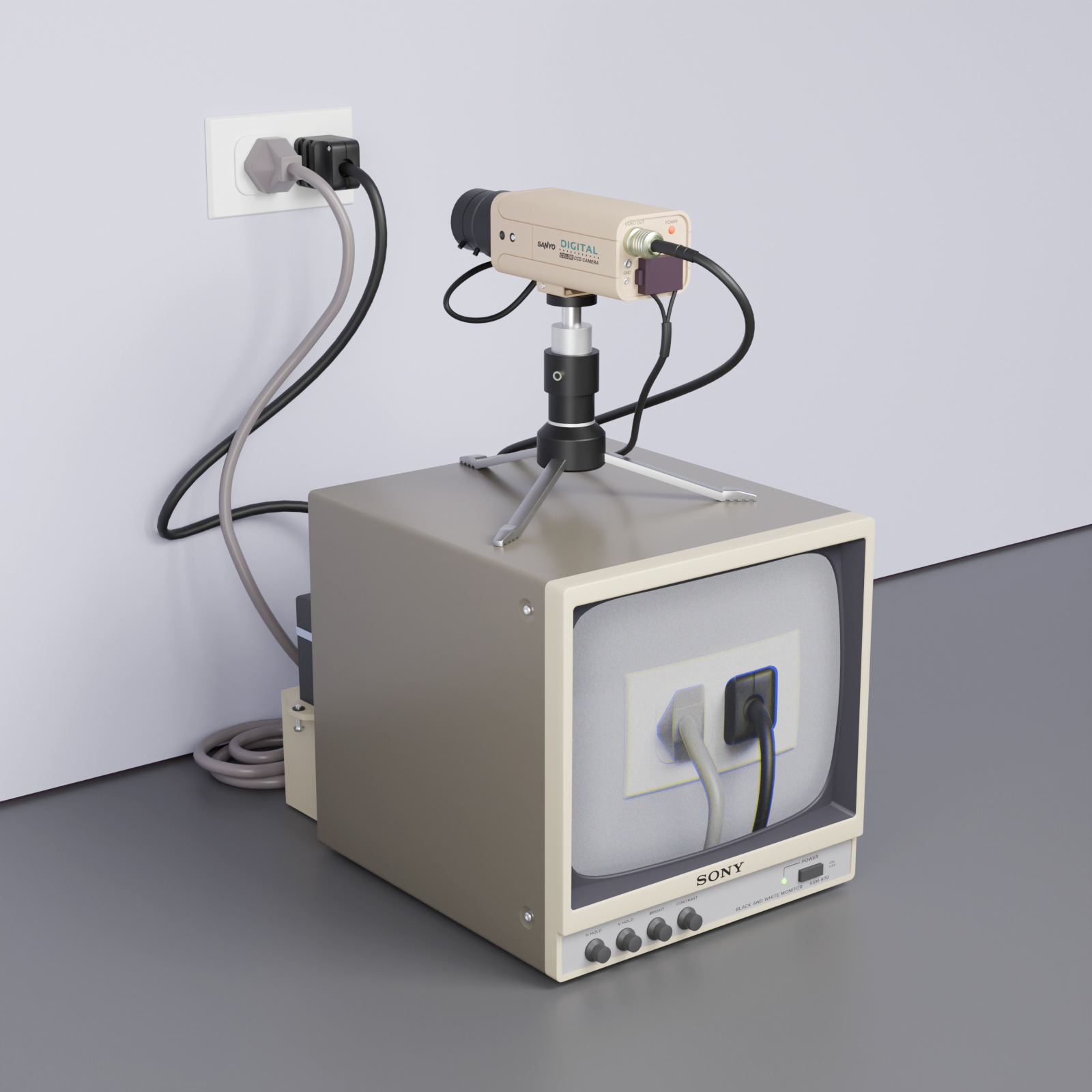 How do you define "real"? I reconstructed (with a secondary modified tv screen) a work created by the American artist William Anastasi. The electronic eye recreates the image. Everything is secure, everything is in sight. A photograph from 1968 art exhibition can be a piece of virtual reality today. What will it be in 50 years?